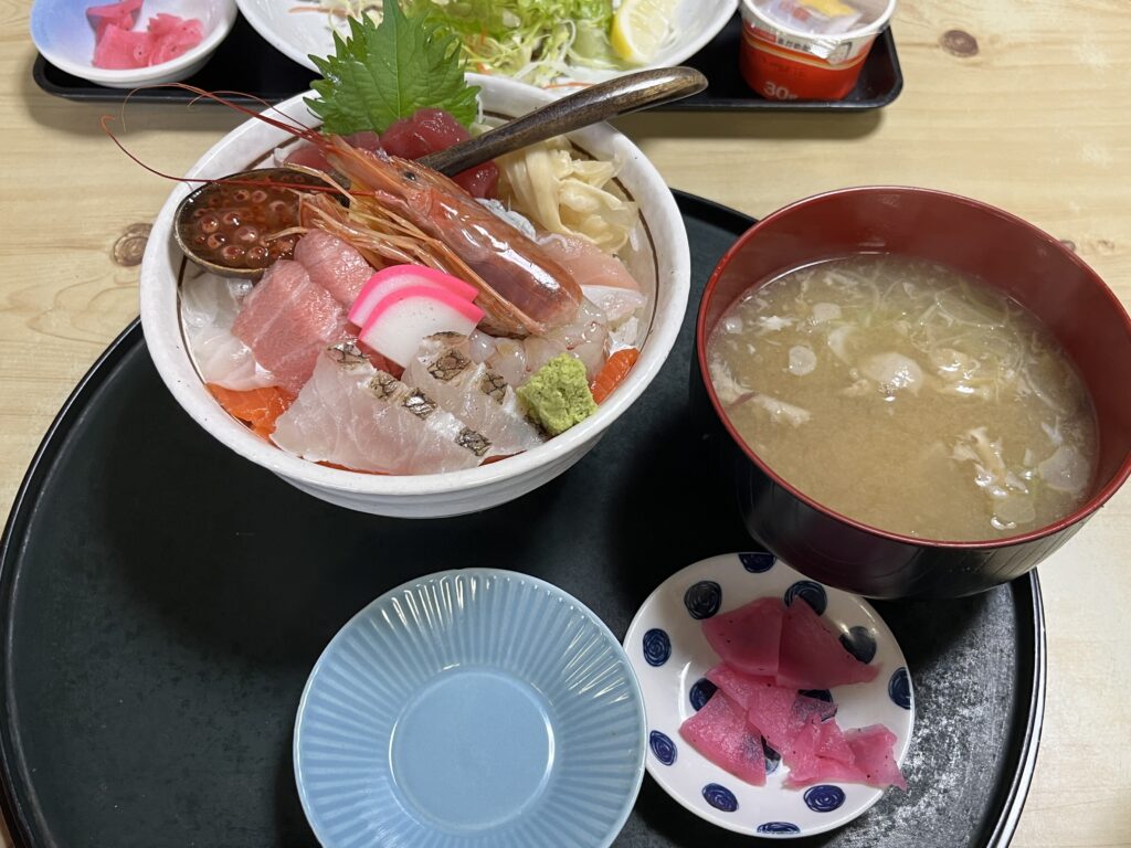 海鮮丼は新鮮なマグロの大トロや赤身、脂の乗ったサーモンに有頭エビ(大きい)、身の締まった鯛、いくらが乗っていて久しぶりにこんなに美味しい海鮮丼食べました。